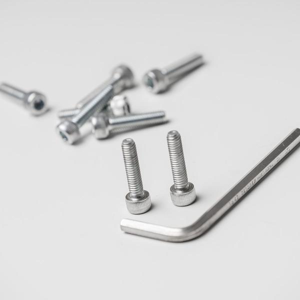 Chrom oder Schwarz - Du hast die Wahl. Unsere Montageschrauben können in Chrom ein Blickfang sein oder sich in Schwarz dezent zurückhalten. Unser Beutel enthält hochfeste Ersatzschrauben und einen handlichen Inbusschlüssel – alles, was Du benötigst, um Dein Musegg schnell und einfach aufzubauen.